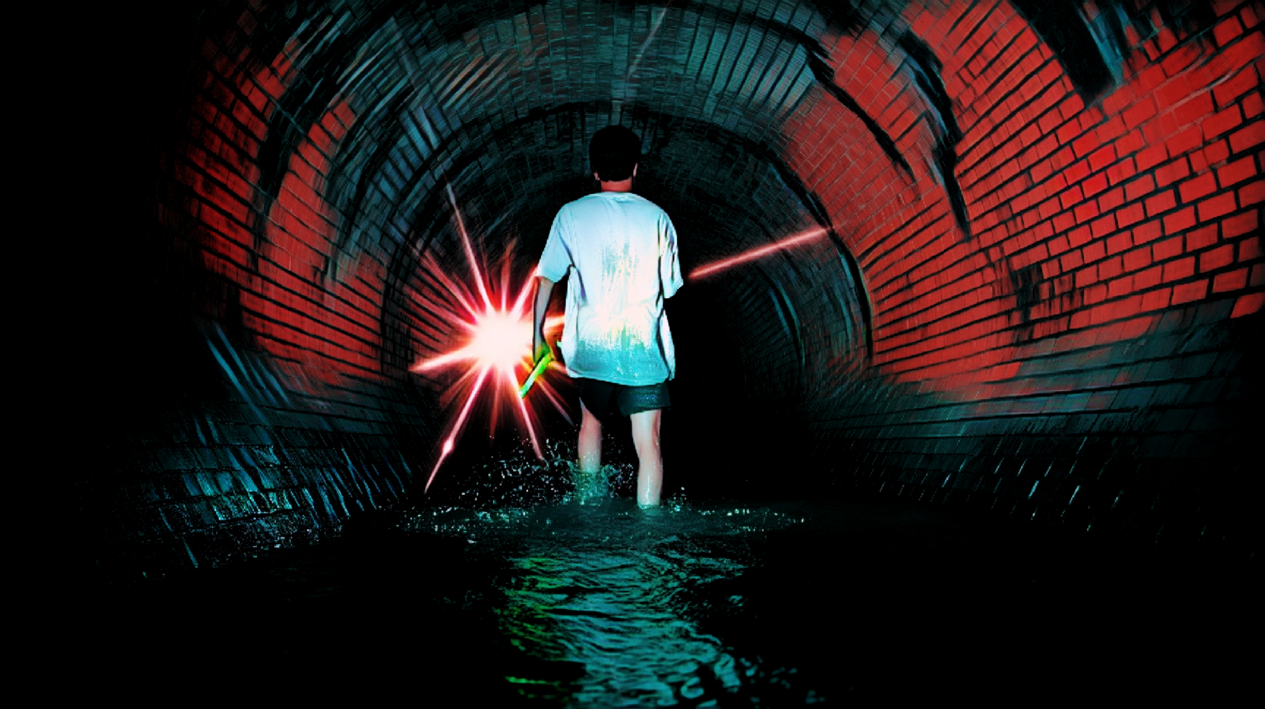 Lost in the sewerpipes, The Boy wades through sludgewake, calling out to The Kid With The Flashlight. The beam flickers once, twice & vanishes into the folds of the darkness as he wades deeper in the foultide…here, it seems the walls breathe & something unknown lies lurking in the rippling, quiet offal.