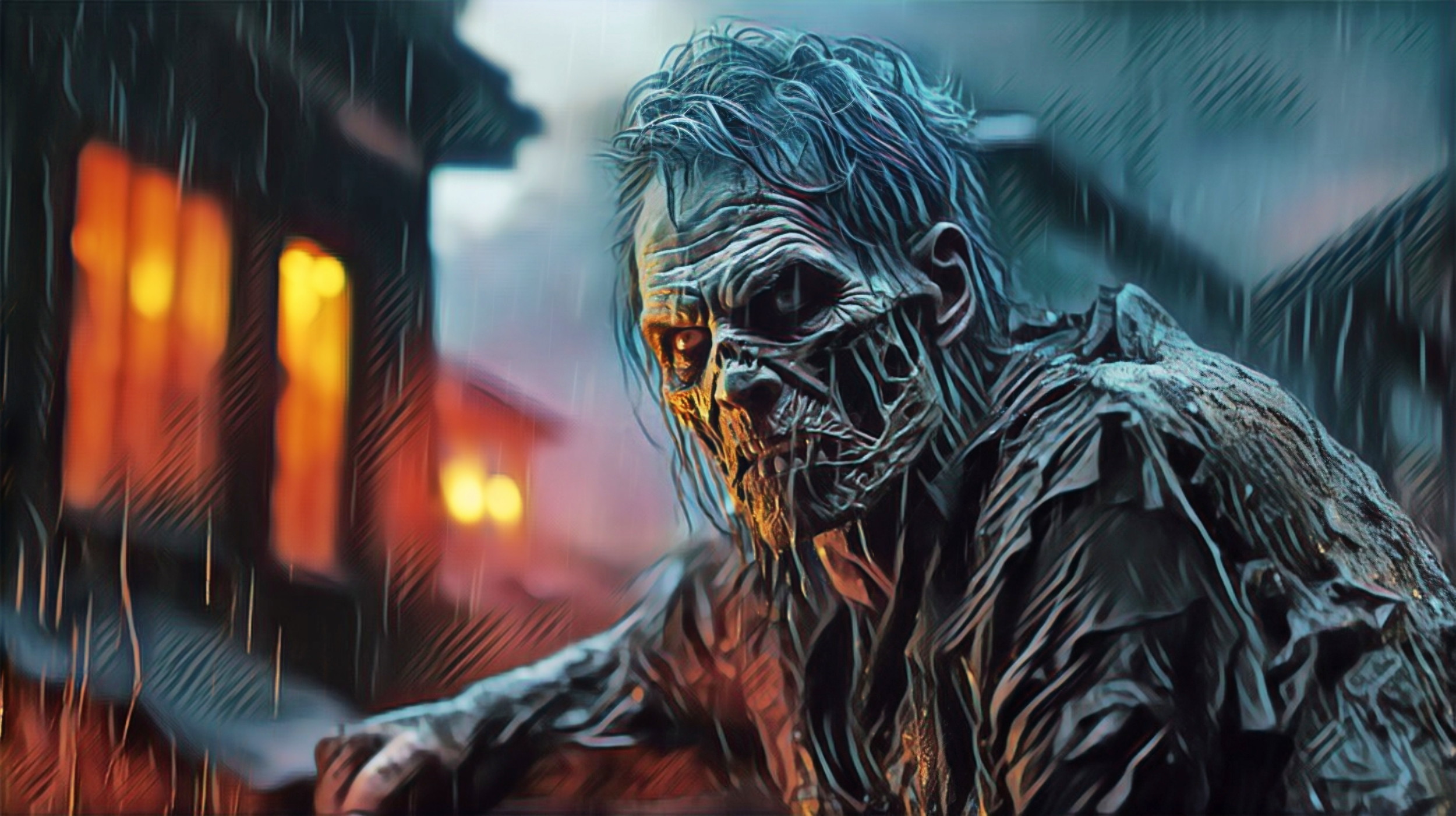When he woke again it was to gasp cold night air as gentle rain grazed him. Everything from his neck down was still somewhere in the grave, but he found he could breathe deep and ragged breaths in the dark. Above, the night sky churned with dark clouds and he managed to wrench himself free.