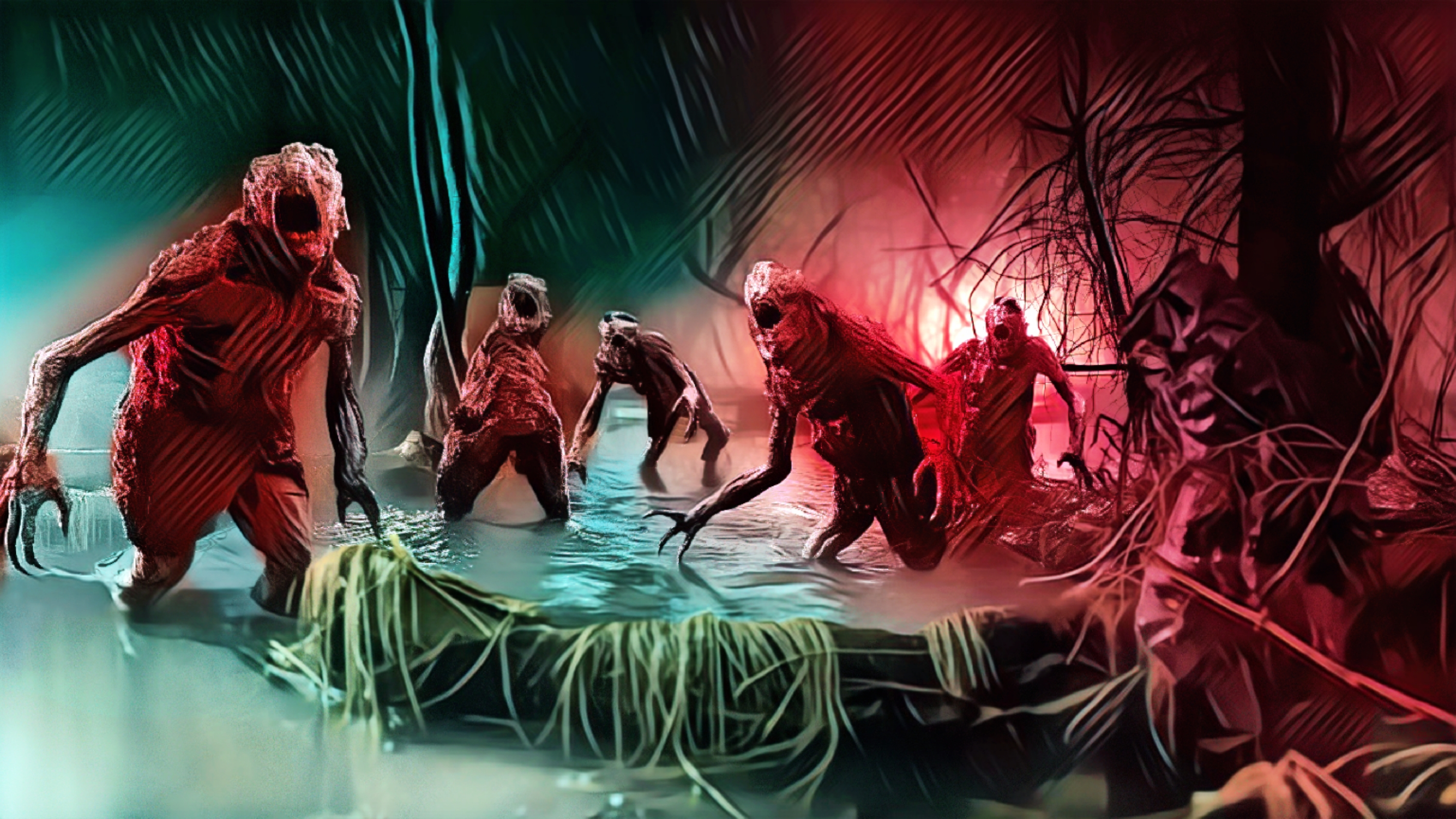 Hours pass and pass and pass. Only once the world, bade to be blind has devoured the decayed and brittle bones of any possible remaining light, at this time and only at this time they begin to stir as if dead things bade return to life…only in the pitchous starkly darkly lack of light do the Muckleshings finally choose to arise from viscous water’s pollutious oplite to cleave and clum and crim and claw to the height of mudsuck squelchy ground overlooking the slowly perpetuous flowing place where they wait until the daylight daily drowns.